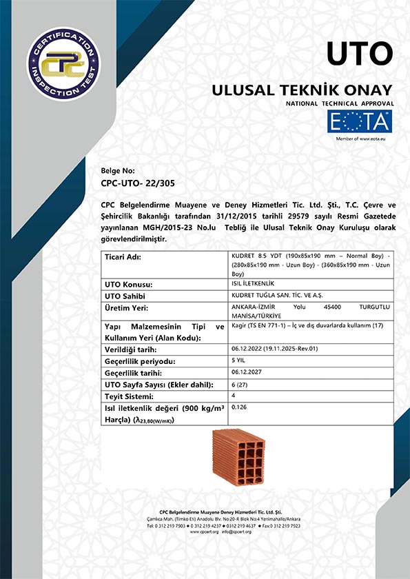 ULUSAL TEKNİK ONAY BELGELİ YATAY DELİKLİ