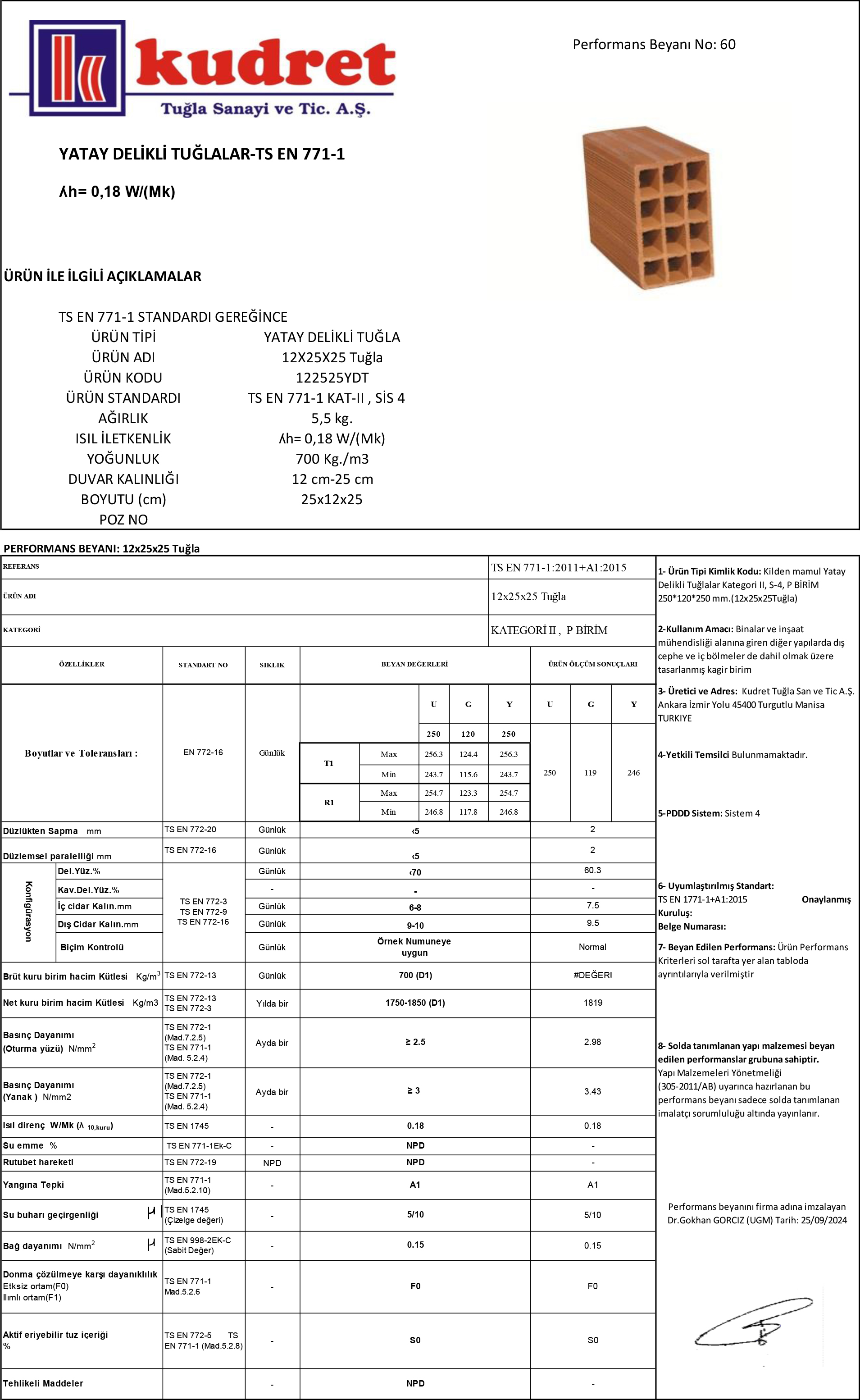 • Ürün Standardı : TS EN 771-1 KAT-II ,P, SİS 4