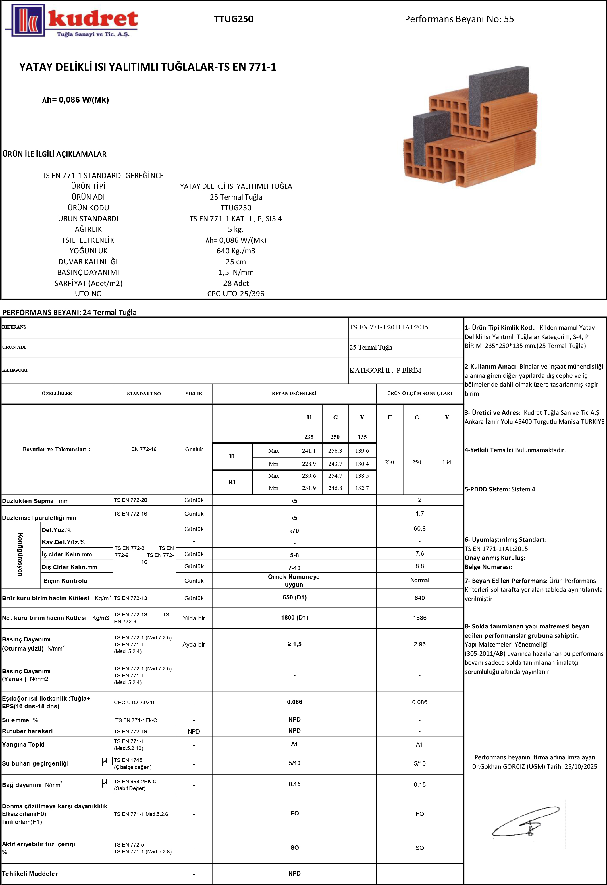 Kudret 25 TERMAL TUĞLA ile birlikte
