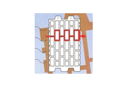 İzo tuğlada, şaşırtmalı boş hava perdelerinin alanları 6 cm²’den fazla değildir. Bu nedenle, hava yoluyla ısı taşınımı engellenmiş olur.