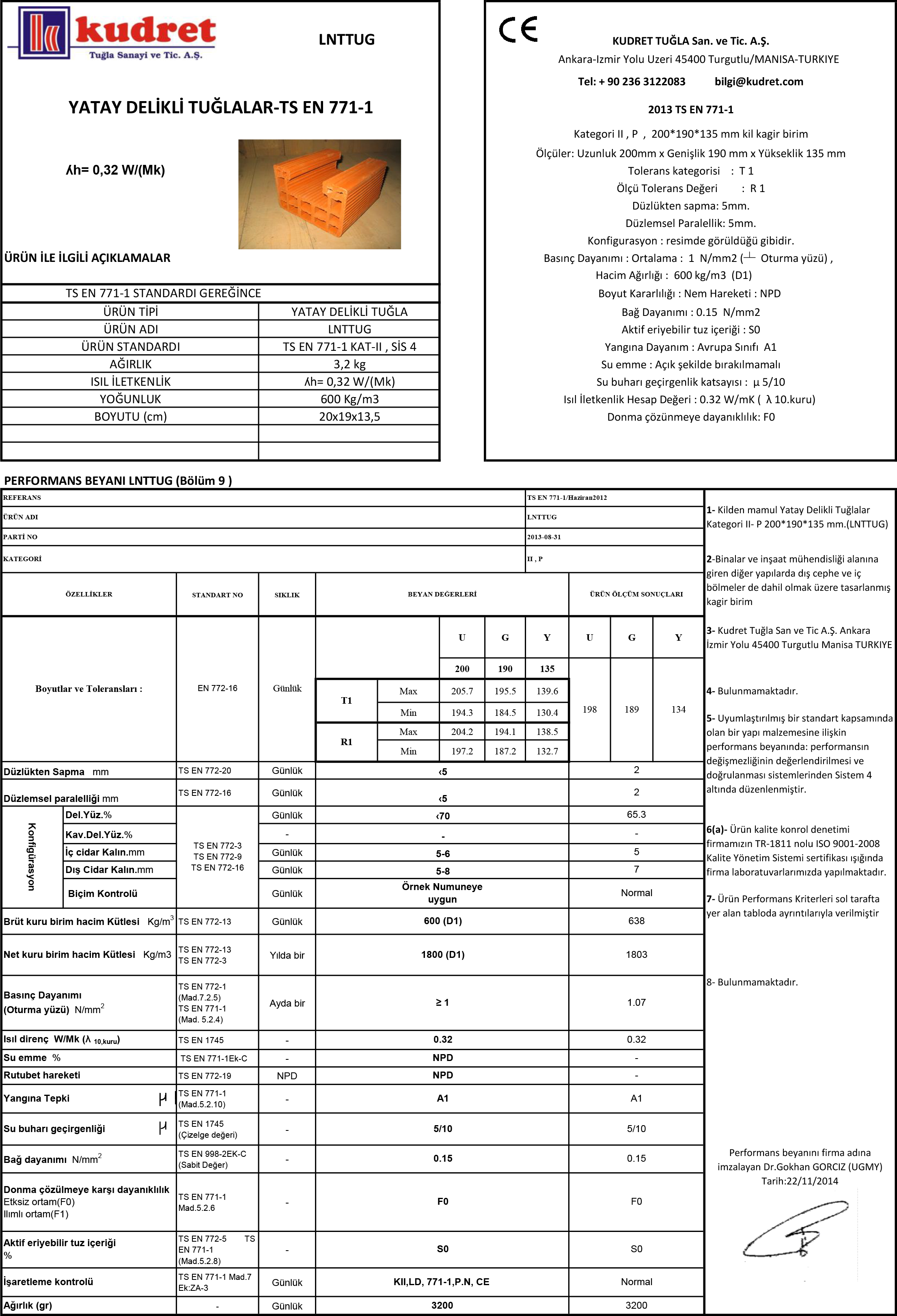 • Ürün Tipi : Lento Tuğlaları • Ürün Adı : 19'luk Lento Tuğlası • Ürün Kodu : LNTTUG • Ürün Standardı : TS EN 771-1 KAT-II , SİS 4 • Ağırlık : 3,2 kg • Isı İletkenlik : ʎh= 0,32 W/(Mk) • Yoğunluk : 600 Kg/m3 • Duvar Kalınlığı : 19-13,5 cm • Boyutu (cm) : 20x19x13,5